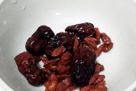6、红枣和枸杞放在水里浸泡5分钟,然后清洗干净。
