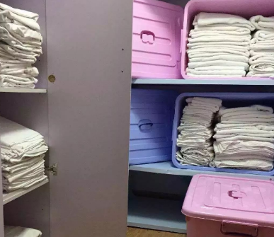 工作间的摆放要合理、整洁,每层客房应设专用消毒及顾客用品保洁柜。使用的抹布一定要清洁卫生,专布专用,物见本色应定期消毒。窗台式空调器滤网或风扇清洁无积尘。