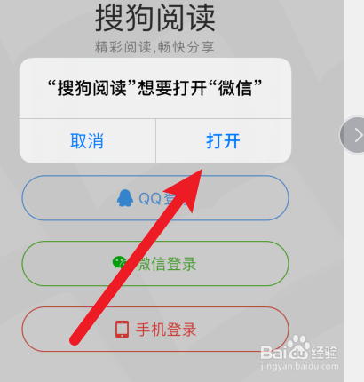 搜狗阅读怎样使用微信登录?如果你不知道的话,就来看看我的经验吧工具/原料more演示手机:iPhone6s演示版本:搜狗阅读6.2.5方法/步骤1/6分步阅读