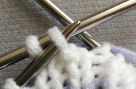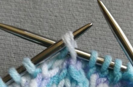 6、中上三针并一针,滑过一针,织2针,把滑过的一针盖上去。