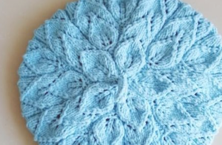 4、右上二并一,滑过左边第一针,织第二针,把第一针盖到第二针上。左边一,同时编织左边2针就可以,另外从中间加针(开始的第一排叶子)称大叶子,这组叶子最后三针用右上三变一收针,小的叶子用中上三变一收针。
