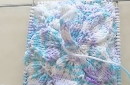 7、花样的多少自己喜欢决定,36完成后,重复26至36就是一组花样,最后换小2号的针织单罗文针13行,下针织下针,上针织上针,然后套收一针。