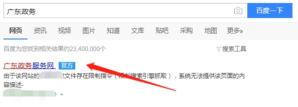 1、打开电脑浏览器,网上搜索广东政务网