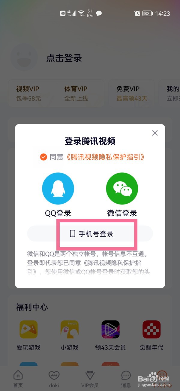 腾讯视频怎么改为手机号登录