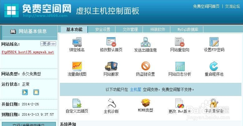 注意事项由于是免费的空间,所以要定期的去延期申请,这点比较麻烦,但是空间很好用。
