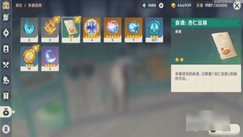 获得该食谱之后,打开自己的背包,在道具中即可找到杏仁豆腐并使用。