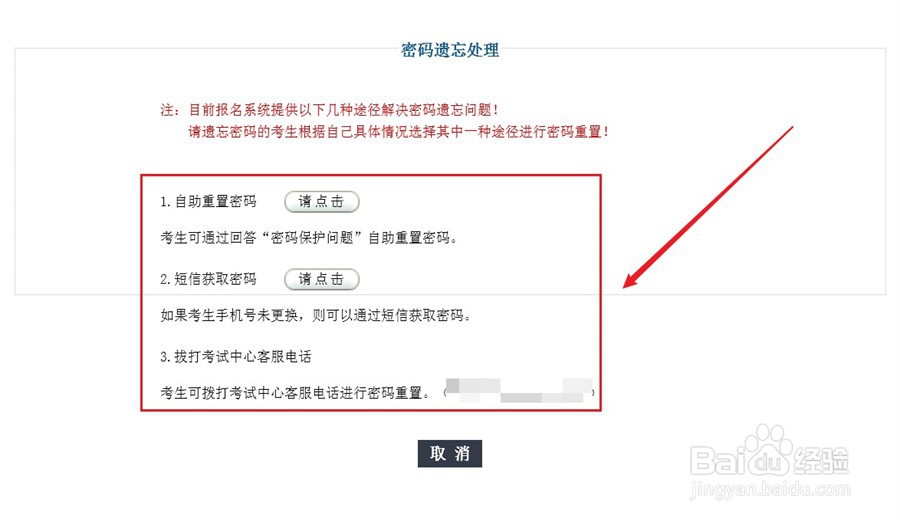 2/3打开密码遗忘处理页面,选择短信获取密码,点击右侧的请点击按钮。