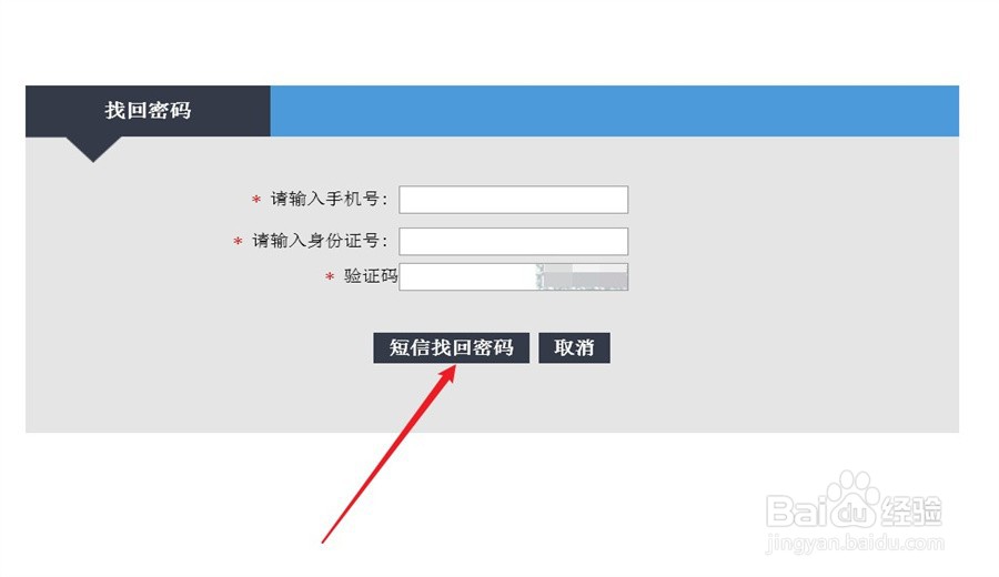 3/3输入手机号码和身份证号码,点击短信找回密码。等待短信,即可找回遗忘的密码。