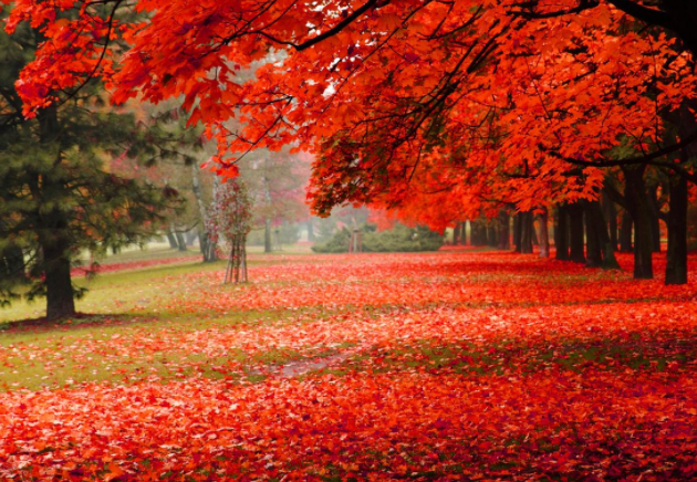 红红的枫叶像一枚枚邮票,飘啊飘啊,邮来的秋天的凉爽。
