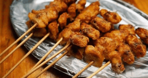 又比瞧轿如东北烧烤中的“烤鸡腚”,专取鸡肛门上方的三角区,去除腺体,用钢钎子穿起来放在炭火上烤制,加入配料烤得外皮焦黄,香气四溢,见到就想来几串喝几杯,鸡油都被炭火的高温逼了出来,油滋滋的,一口下去满嘴鸡油的焦香味,让你不得不连干三大杯啤酒才算过瘾!
