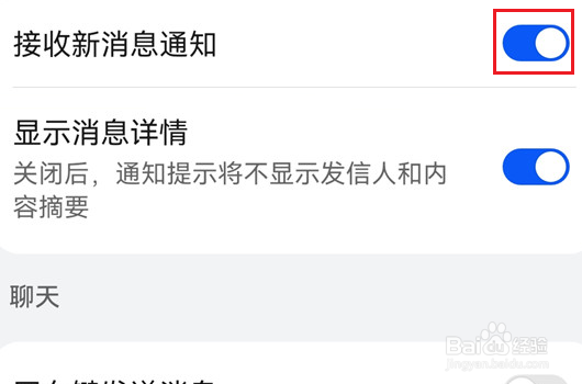 4/4进入设置界面,关闭接收新消息通知开关即可。