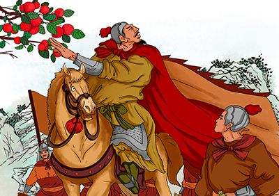 有次曹操带兵出征,途中找不到有水的地方,士兵们都很口渴。于是曹操叫手下传话给士兵们说:“ 前面就有一大片梅林,结了许多梅子,又甜又酸,可以解渴。”士兵们听后,嘴里都流口水。他们凭借着这个,得以到达前方有水源的地方。