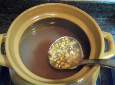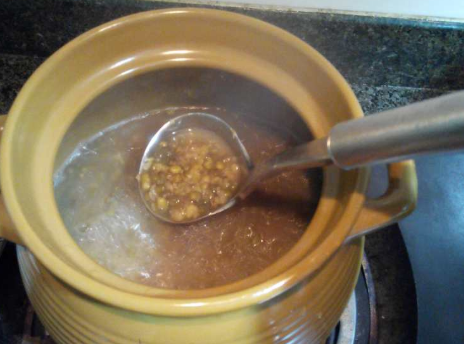 9、捞起绿豆,绿豆完全开花,汤里绿豆已经出沙即可关火。