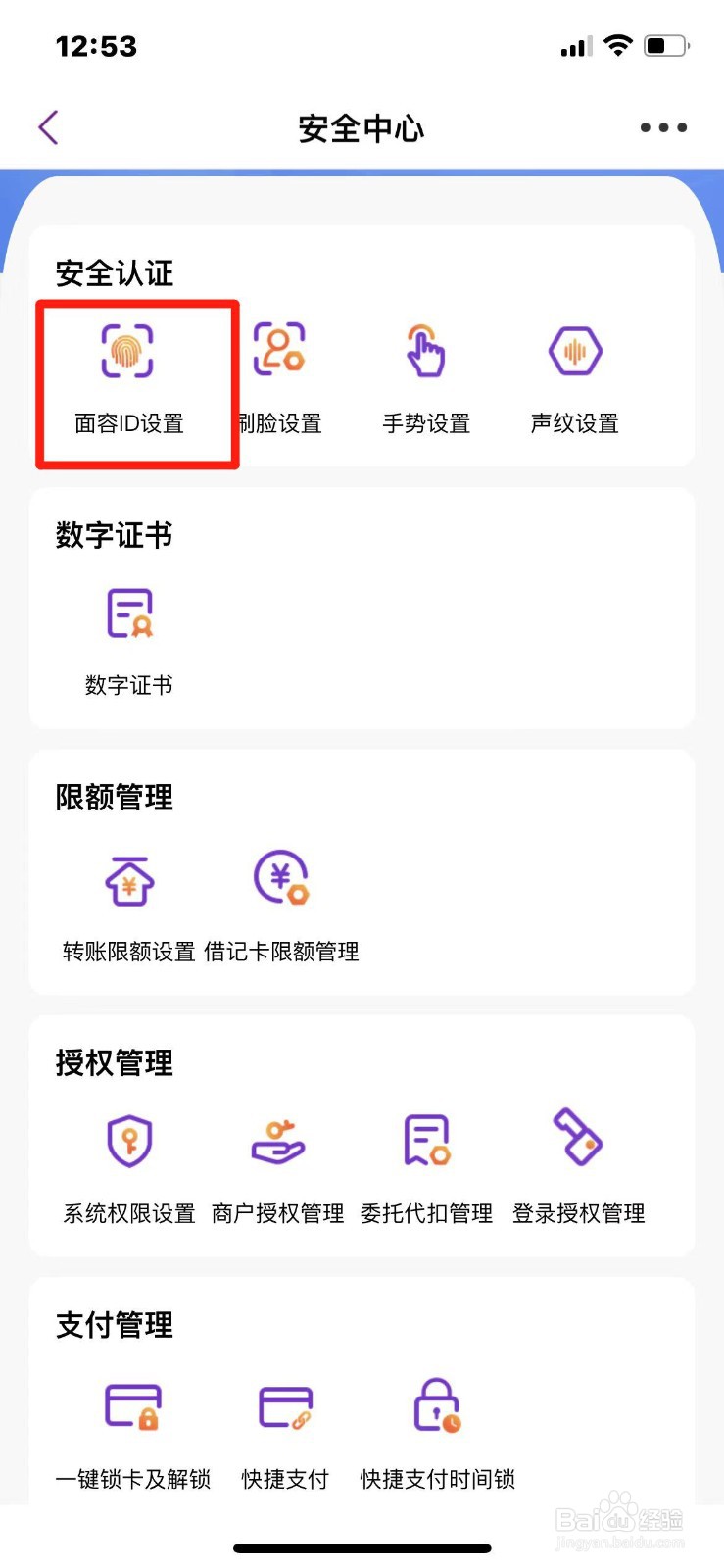 4/5第四步:接下来在安全中心点击【面容ID设置】。