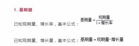 2、增长量=现期量-基期量=基期量*增长率=(现期量/1+R)*R;