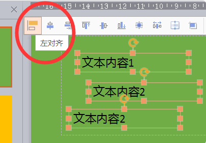 2、选中后,在其上方会显示对齐的窗格,选择“左对齐”。
