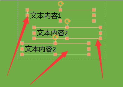 5、再调整第三个文本框,也会在文本框之间显示“双向箭头”,此时松开拖动文本框的鼠标左键,即可将文本框距离调整为一样。