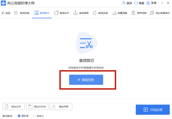 2、大家通过神奇之手的操作来到新的页面,这时候就可以从内部打开个人需要编辑的音频文件,直接找到【添加文件】来打开文件选择的需要,来快速导入自己的素材,还能直接将这段音频素材拖到页面上就可以打开啦,很是便利。