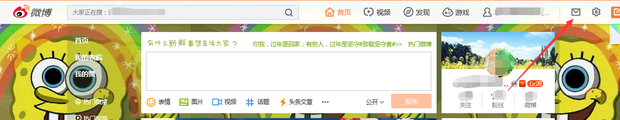2.登陆后点击右上角的消息箱,一个信封图标;