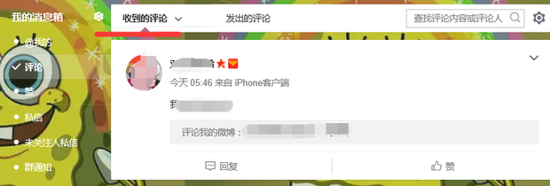 4.收到的评论里可以看到跟微博好友的互动;