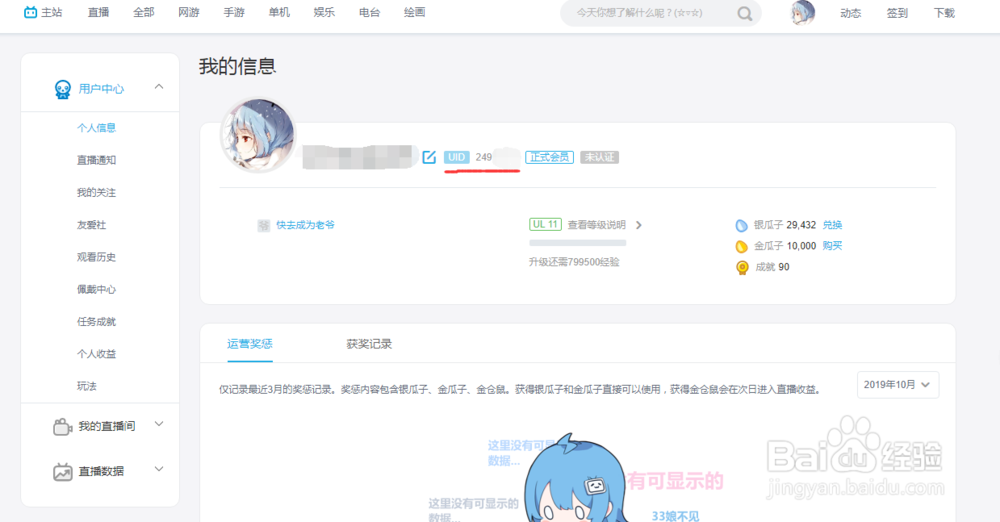 电脑网页b站如何查看自己的UID和注册时间