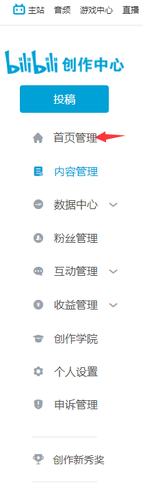 5/6点击投稿管理后(如图)在左侧点击首页管理