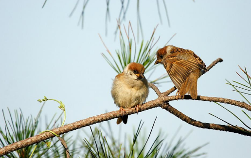 兴奋:是生物机体的一种状态转变的过程。机体代谢、功能从相对静止状态转变为活动状态,或是从弱的活动状态转变为强的活动状态。在这里形容小鸟的状态。