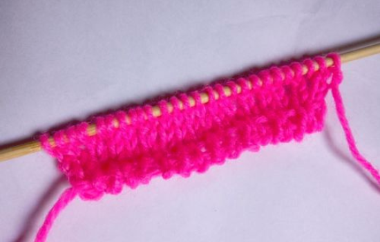 5、然后开始编织身体部分,同样再正面织下针,反面织上针。