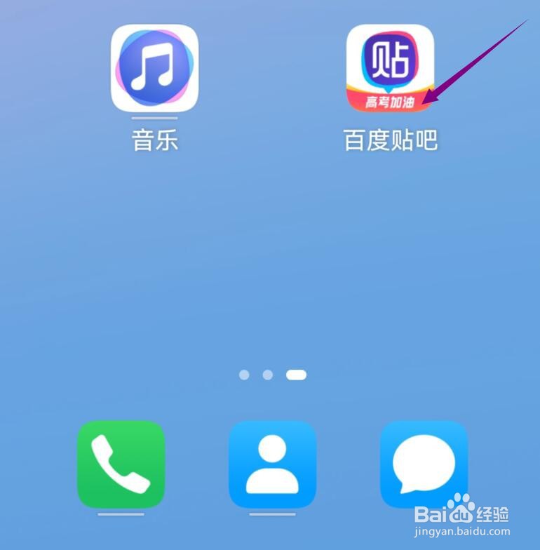 打开“百度贴吧(高考版)”APP后,点击设置按钮(六角螺母图标)进入,如图箭头所示。