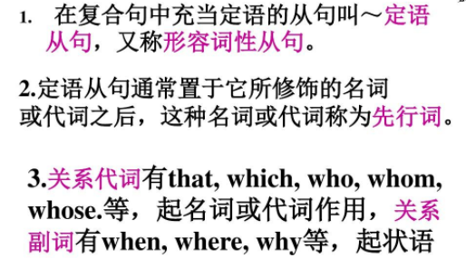 定语从句的关系代词that的用法:若先行词指人或物则代替先行词在定语从句中充当主语或宾语。
