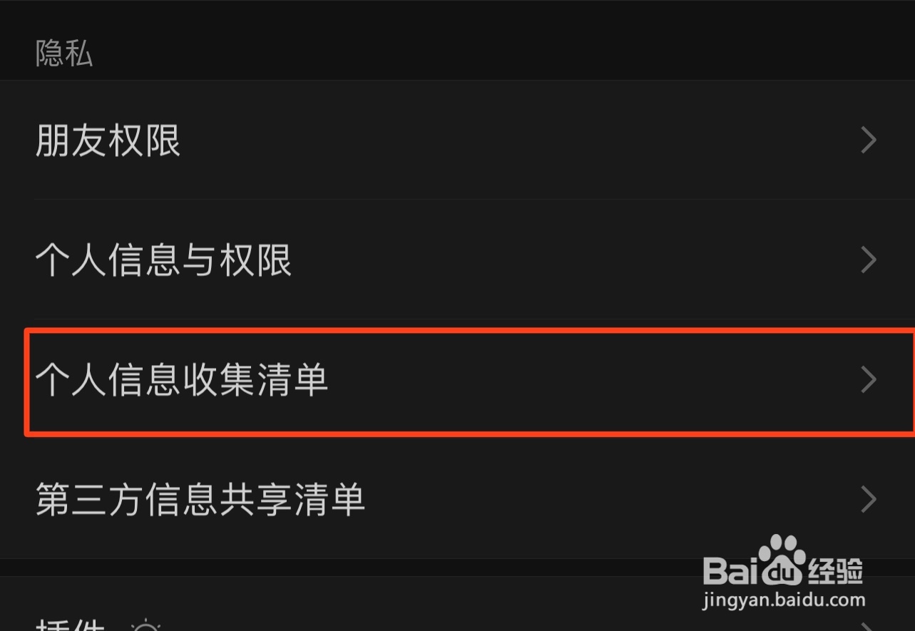 找到-个人信息收集清单,点击打开,如图所示;
