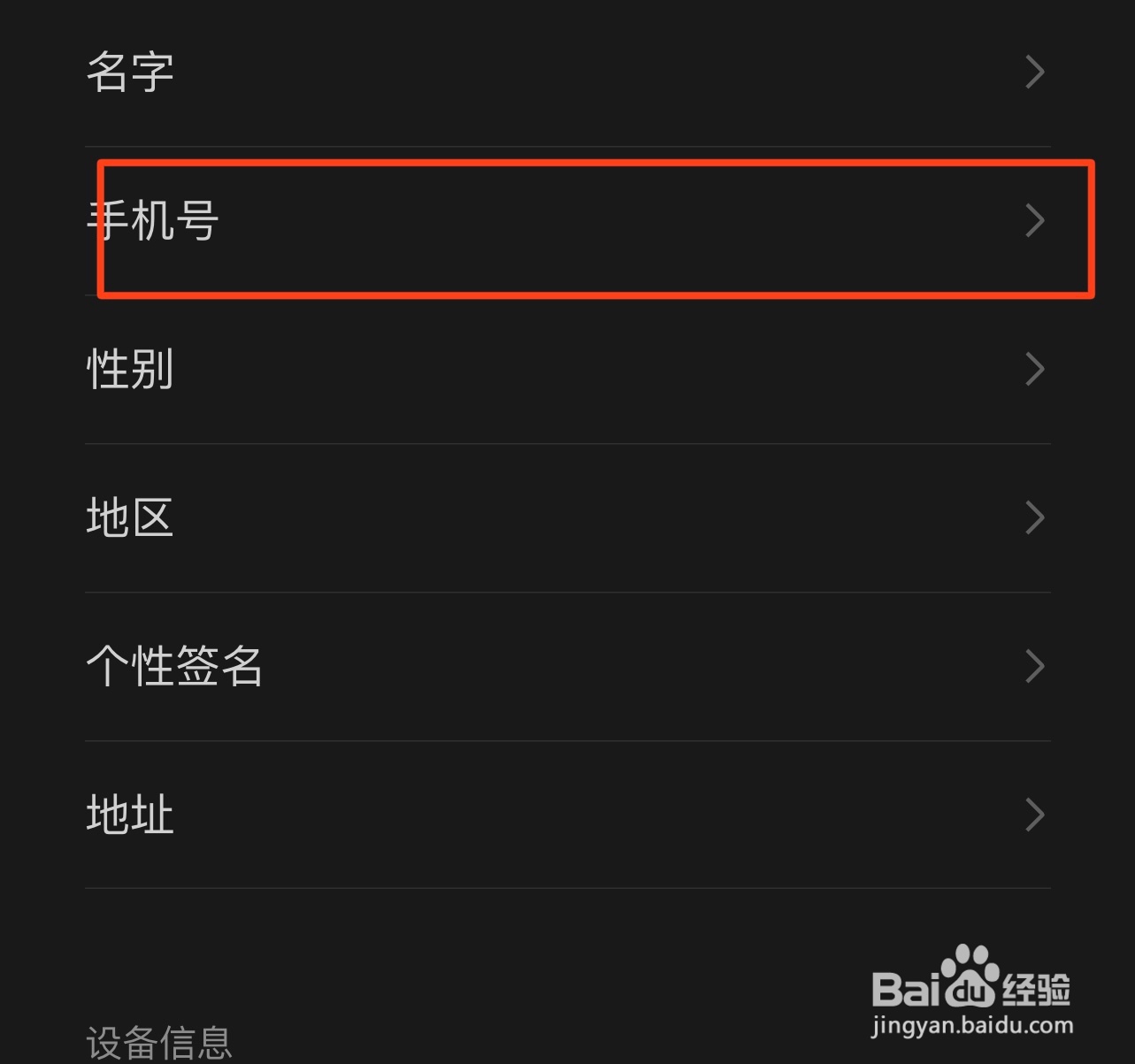 找到-手机号,点击打开,如图所示;