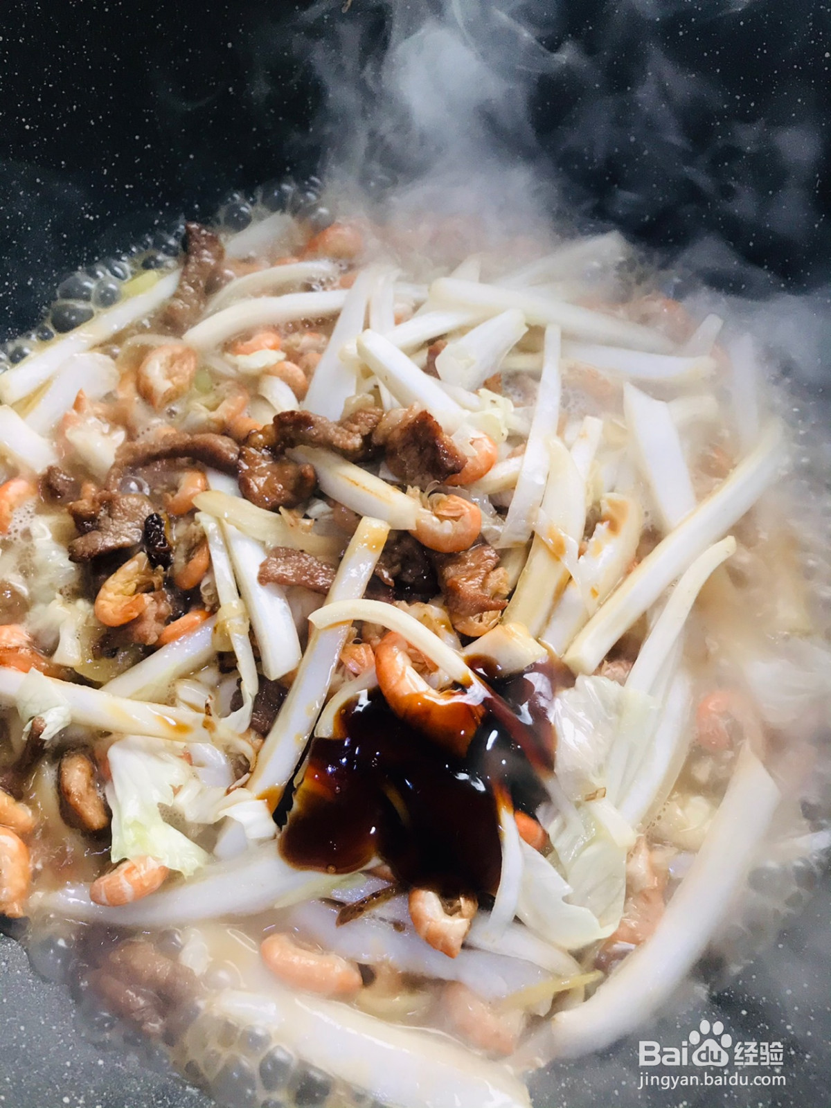 加入适量清水、生抽、蚝油盖上锅盖