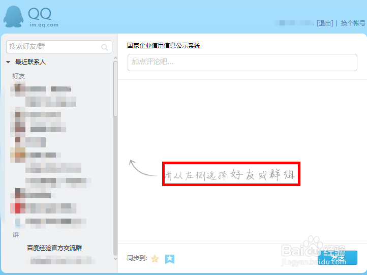 接着系统会自动跳转到QQ分享的页面,从页面的左侧点击选择好友或者群组。