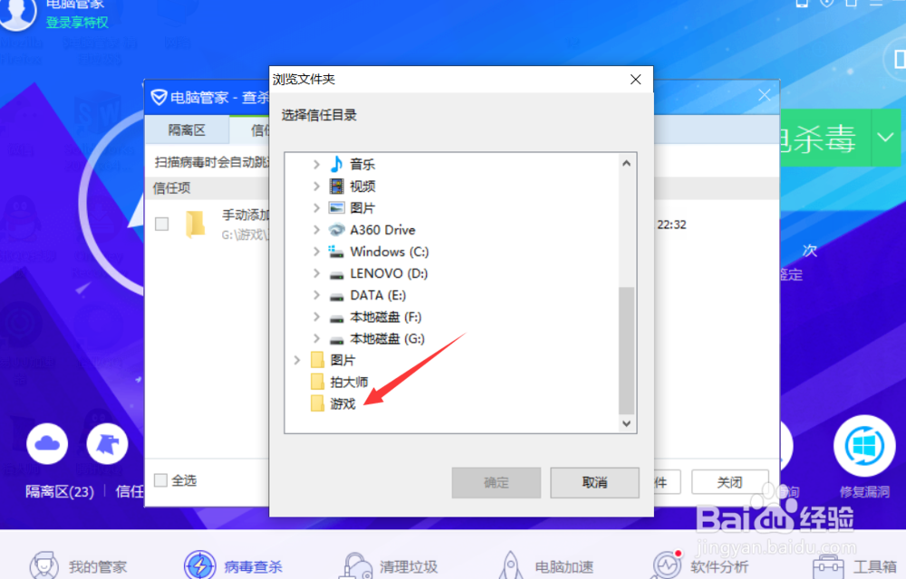 然后选择要加入白名单的文件或者文件夹,点击确定即可