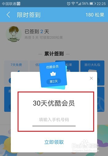 点击之后,会弹出框输入手机号领取,点击立即领取,如下图所示: