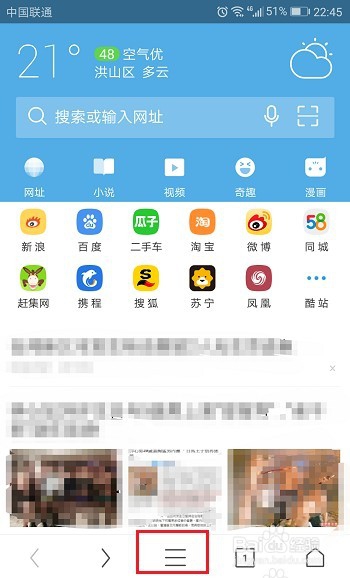 进去浏览界面之后,点击中间的菜单图标,如下图所示:
