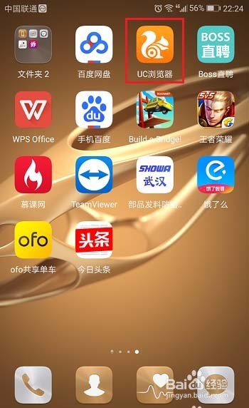 在我们的手机里面打开app,即UC浏览器,如下图所示: