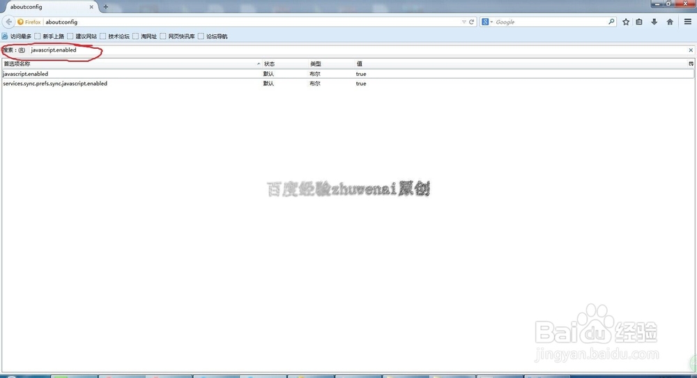 点击后看到如下画面,在搜索地址栏中输入javascript.enabled