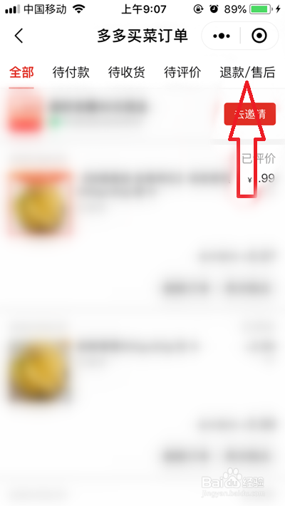 在微信多多买菜小程序订单页面点击【退款/售后】