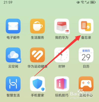 在手阅拒机上面打开备忘录。