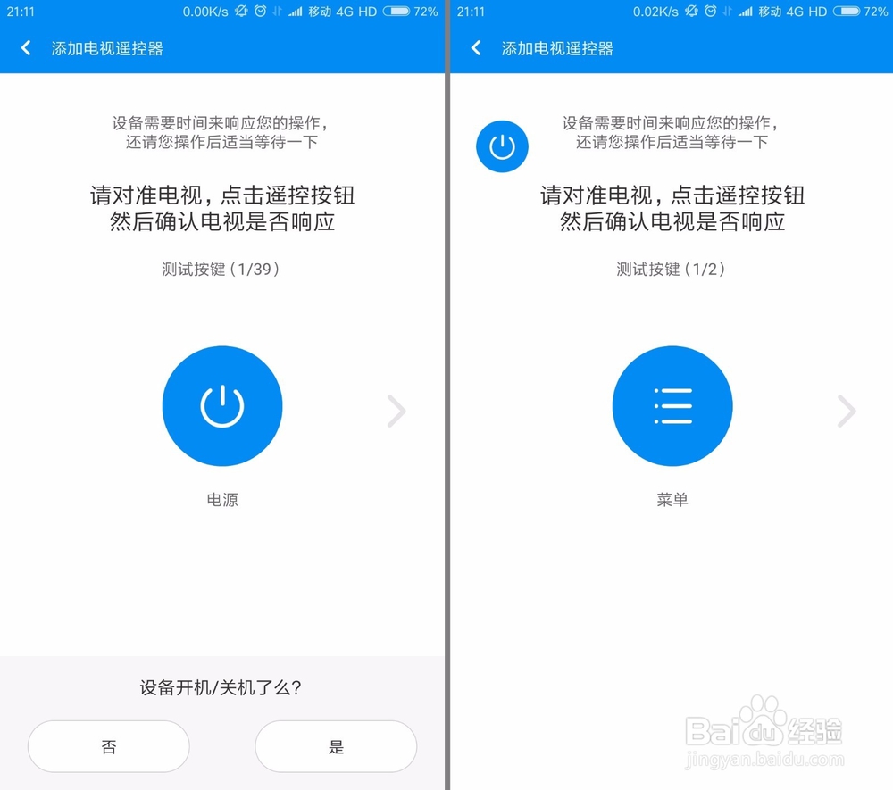 电视机的遥控器添加完成,可以正常遥控电视机。