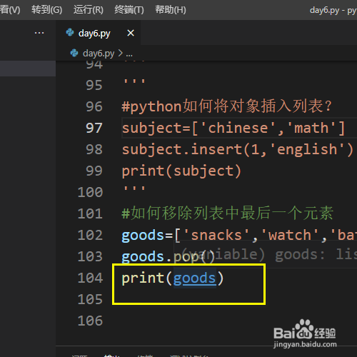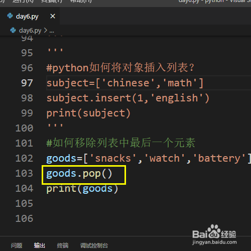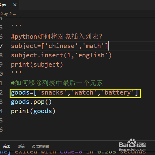 在输出控制台可以看到原来列表中的最后一个元素被删除了。