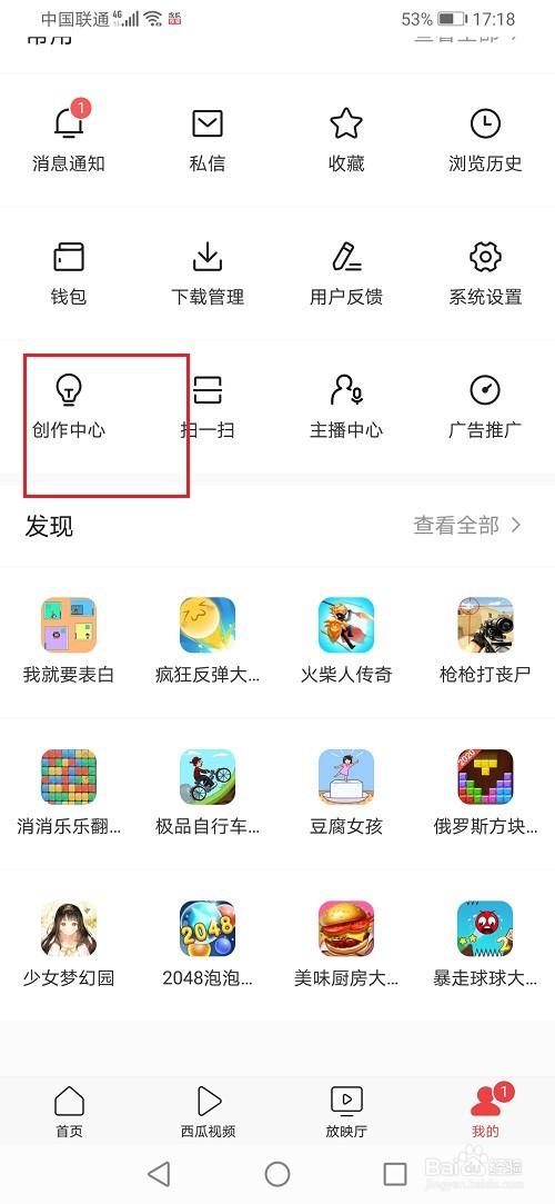 第一步打开今日头条,在我的界面,点击创作中心,如下图所示: