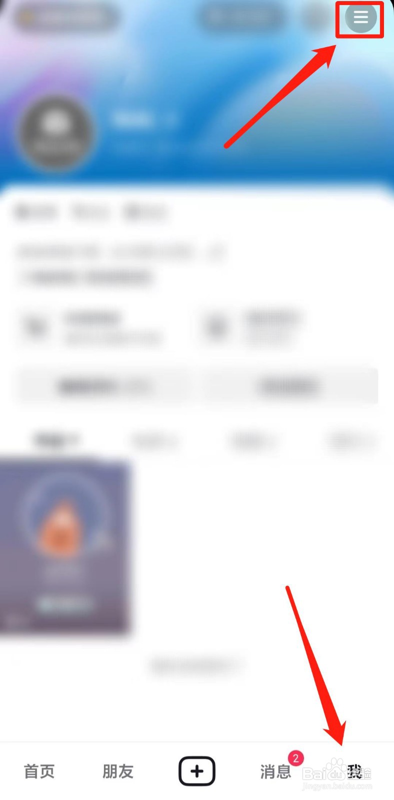 在【我】页面,点击右上角三杠图标。