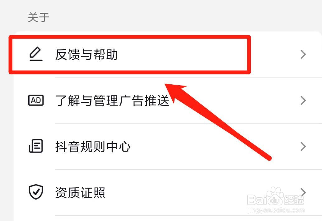 进入设置页面,在关于下方,点击【反馈与帮助】。