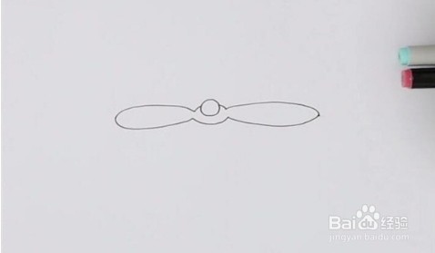 先画出竹蜻蜓圆圆的头部,然后顺着在左右两边画上叶子部分。