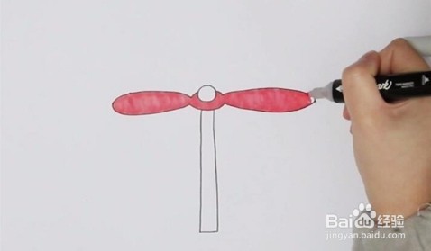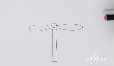 再在头部下方画长一根瘦瘦的长竹竿,这样竹蜻蜓大致的轮廓就已经完成了,非常简单。