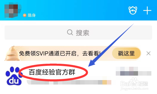 第一步:打开QQ,找到一个群,比如【百度经验官方群】