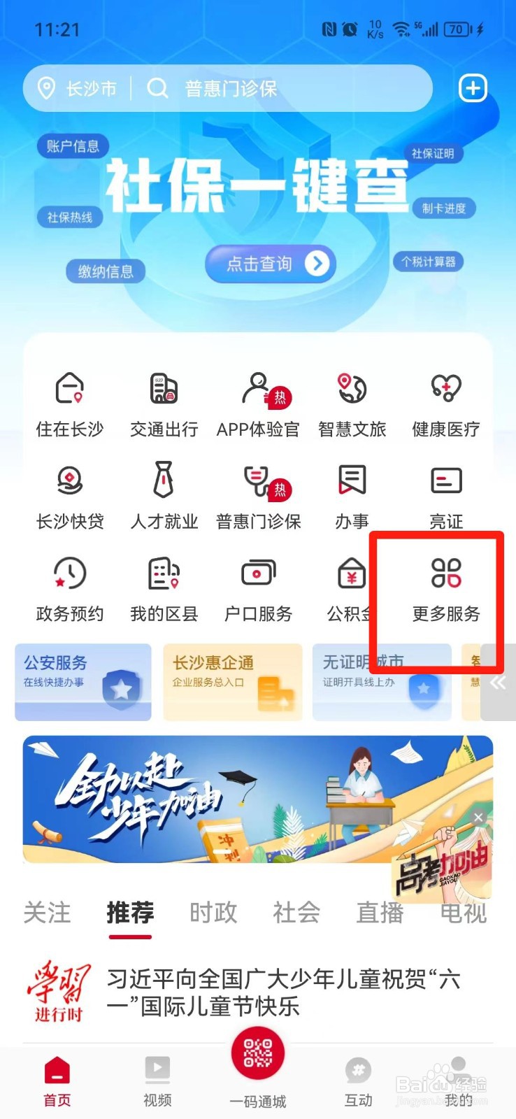 第一步:打开【我的长沙】软件,点击页面上的【更多服务】